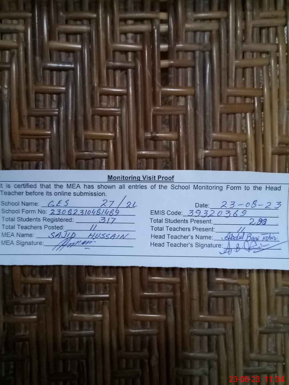 | EMIS Code: 39320369 | Name of School: GES CHAK NO 27/2-L | |||