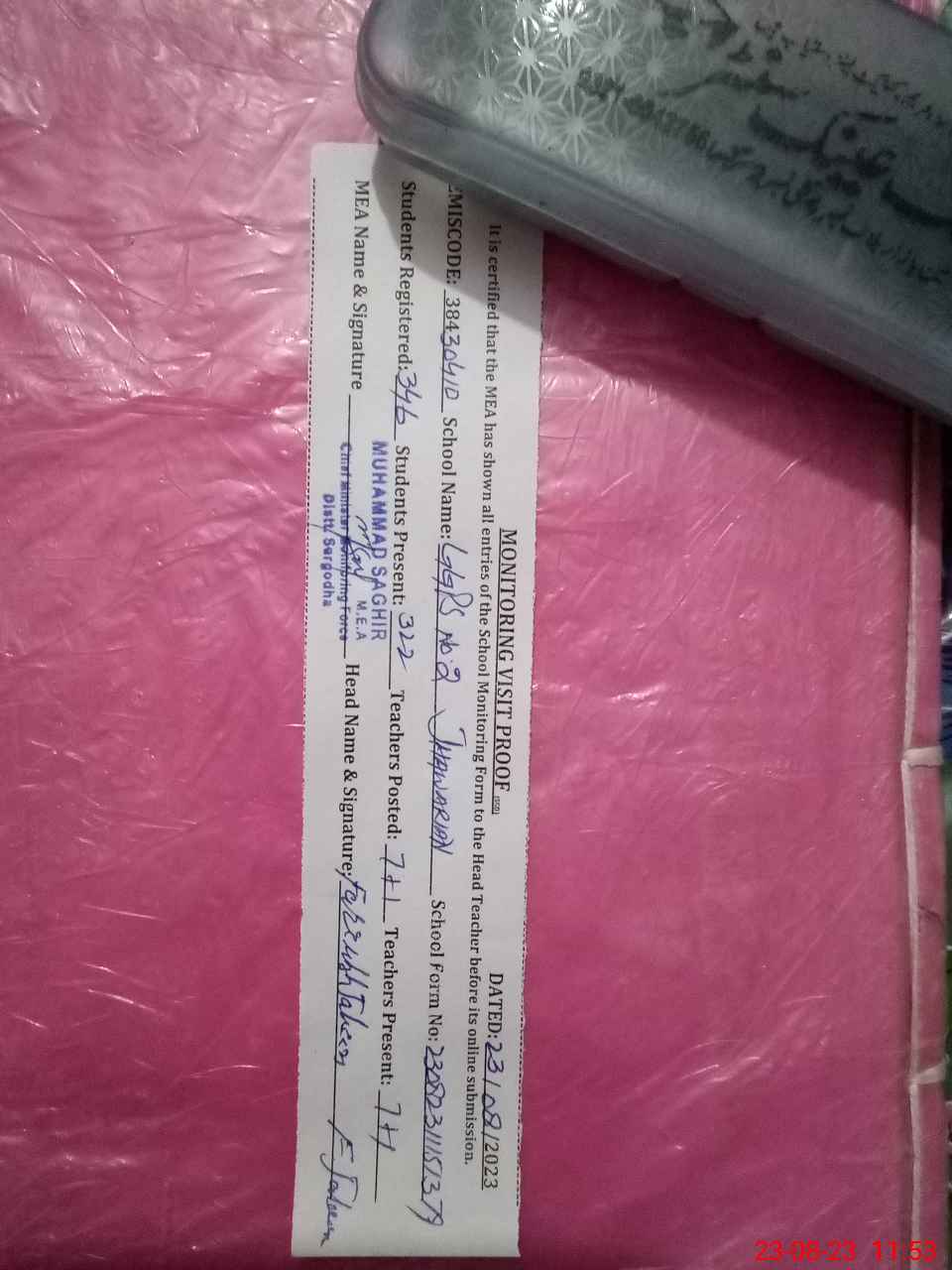 | Certified that this School was Inspected by the Undersigned MEA/DMO Today and the Information Stated Above is as Per Record. | |||||