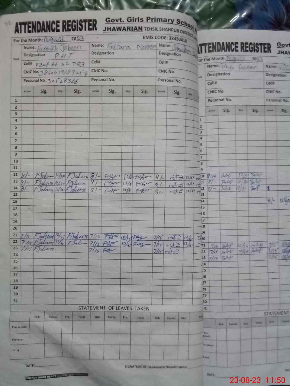 | Name: FA**** JA**** Designation: (School Headmaster's/Headmistress's) PST Phone/Cell Number: 03**** |