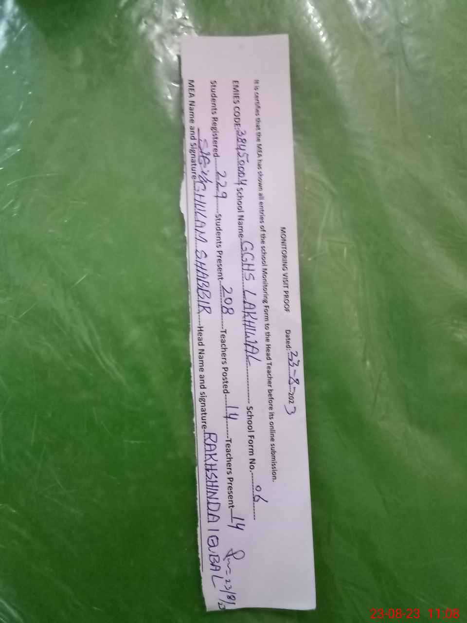 | EMIS Code: 38450004 | Name of School: GGHS LAKHI WAL | |||