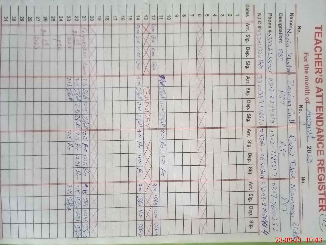 | Name: NA**** KH**** Designation: (School Headmaster's/Headmistress's) PST Phone/Cell Number: 03**** |