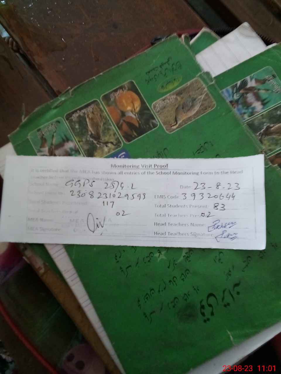 | Attendance Register | Head Teacher | MEA with School | Visit Proof |