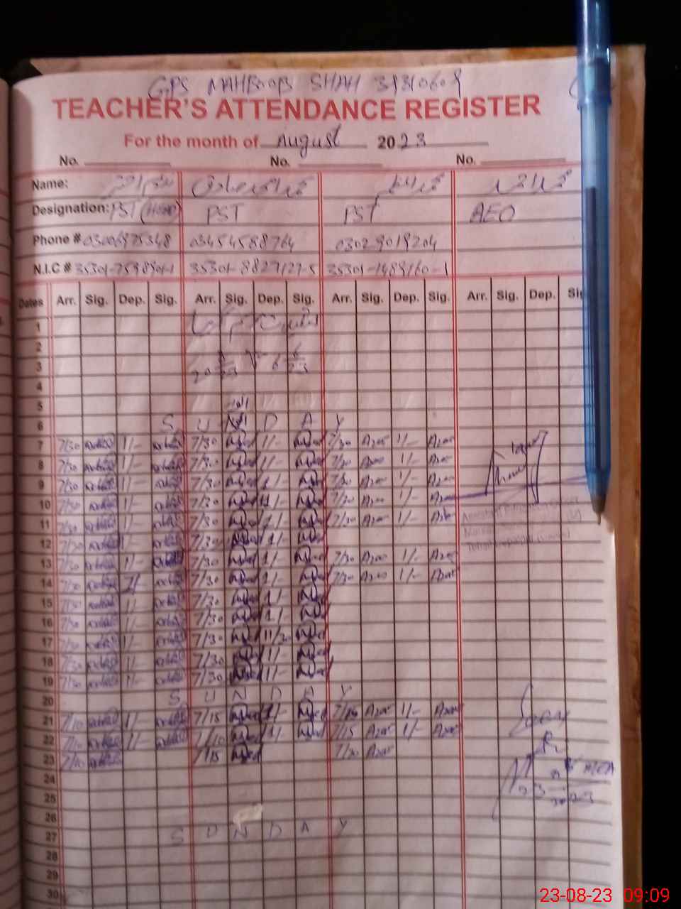 | Name: NA**** AK**** Designation: (School Headmaster's/Headmistress's) PST Phone/Cell Number: 03**** |