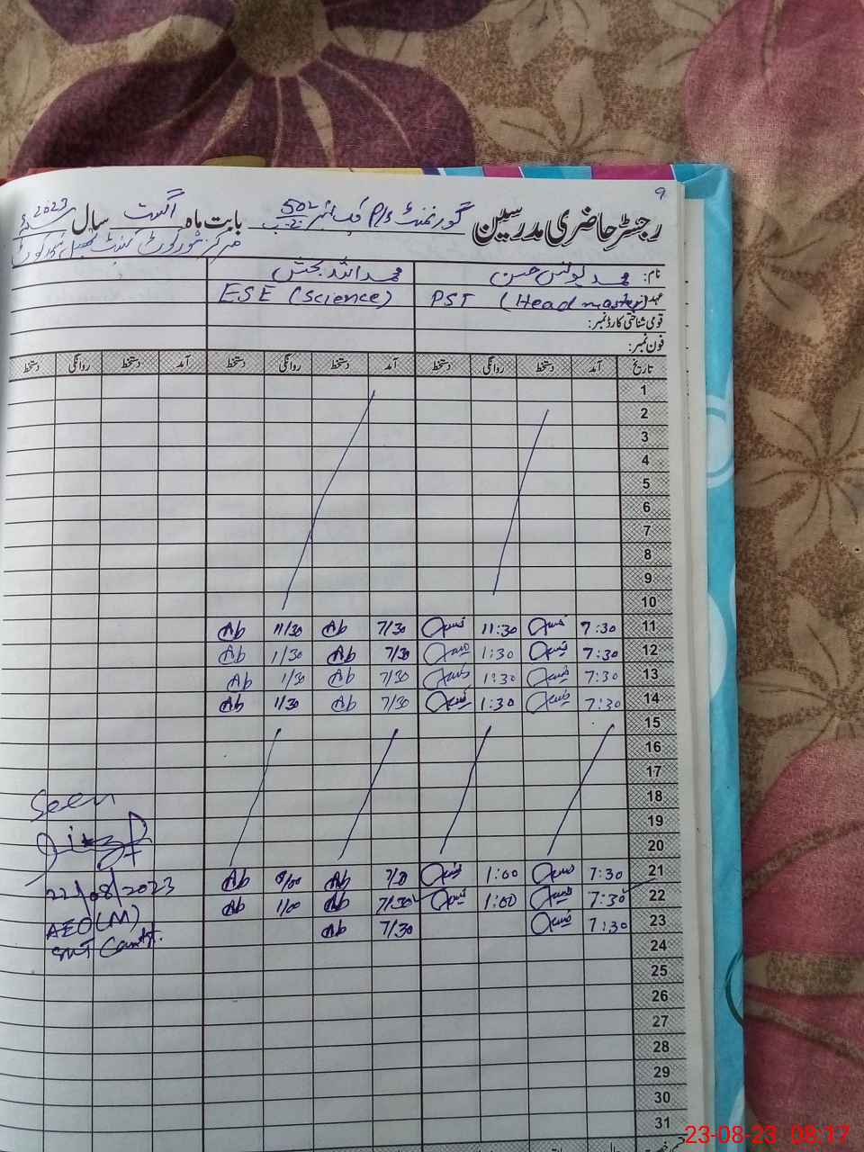 | Remarks (Use Separate Page if Required): ESE MUHAMMAD ALLAH BUKHSH IS PRESENT BUT HIS NAME IS NOT IN TAB | |||||