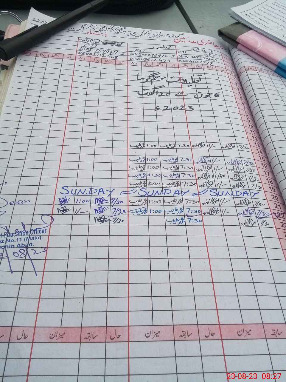 | Name: Mu**** Ra**** Designation: (School Headmaster's/Headmistress's) P S T Phone/Cell Number: 03**** |