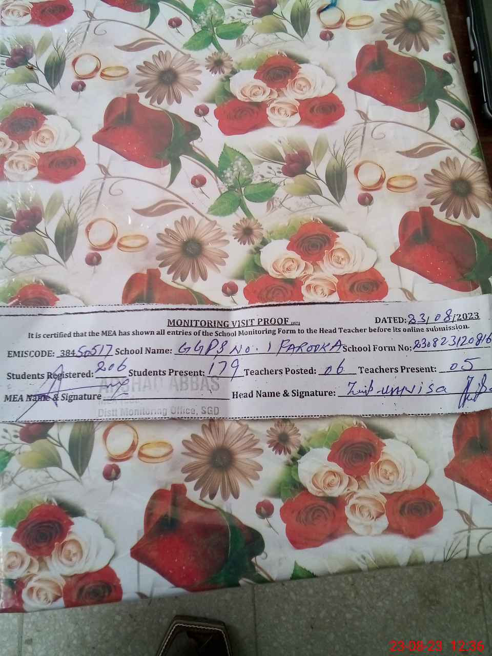 | Attendance Register | Head Teacher | MEA with School | Visit Proof |
