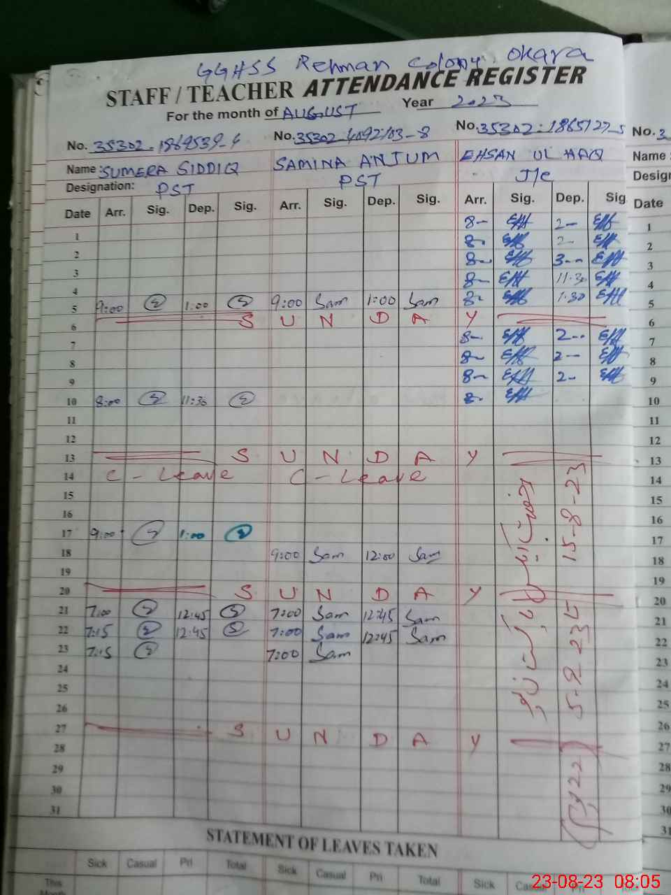 | EMIS Code: 39320957 | Name of School: GGHSS REHMAN COLONY OKARA | |||