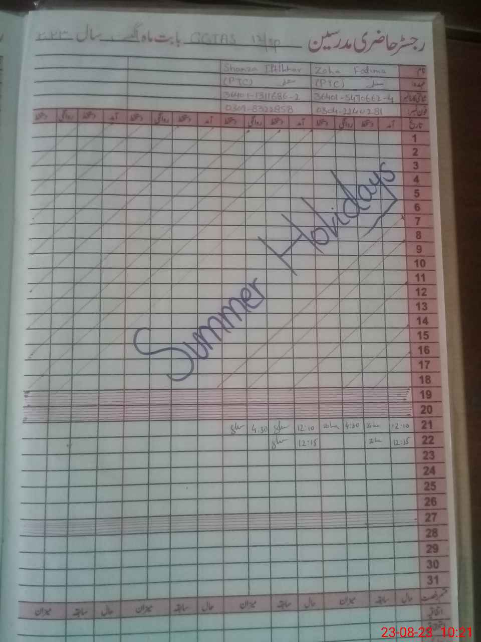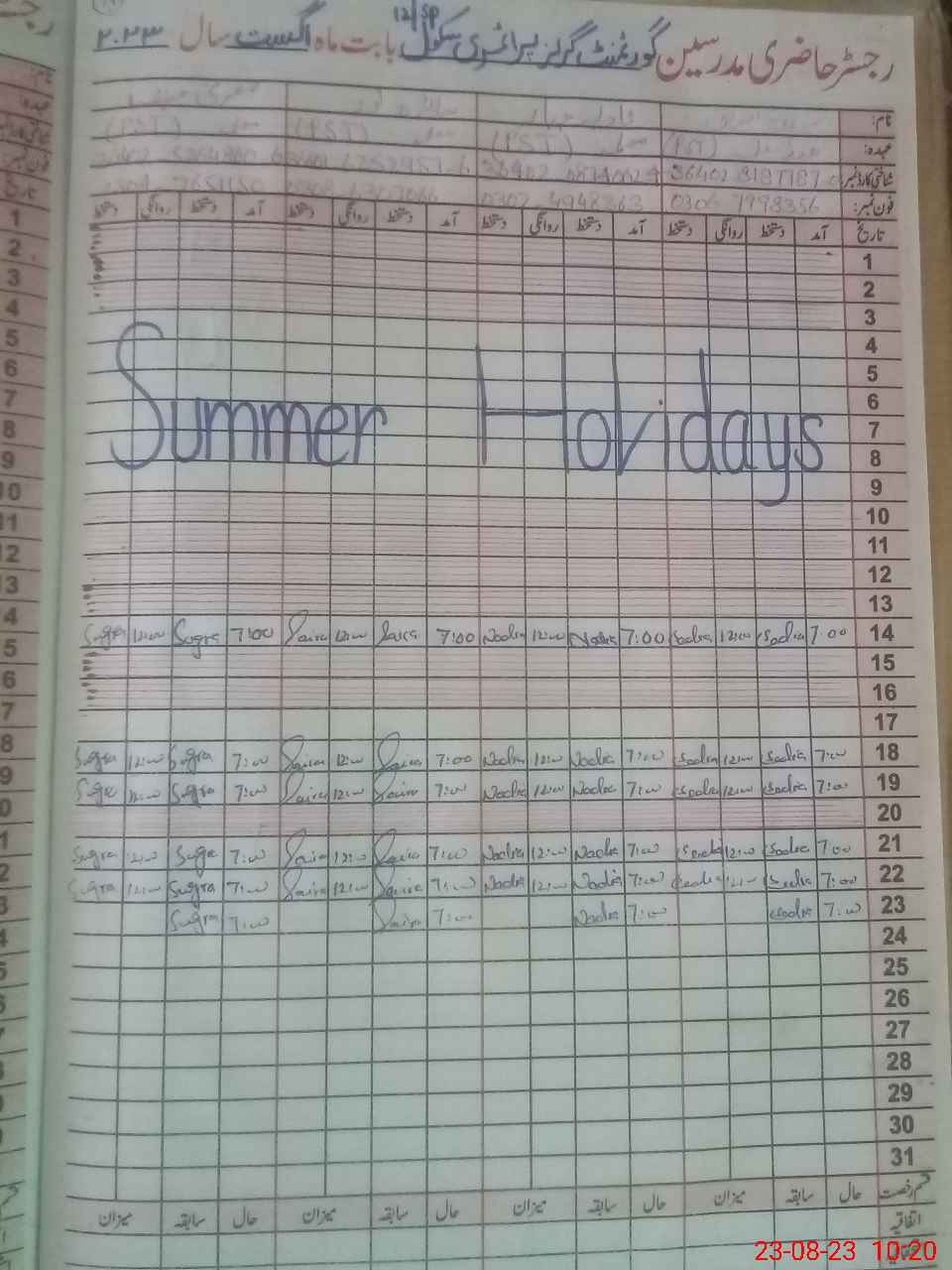 | Name: Sa**** No**** Designation: (School Headmaster's/Headmistress's) PST Phone/Cell Number: 03**** |