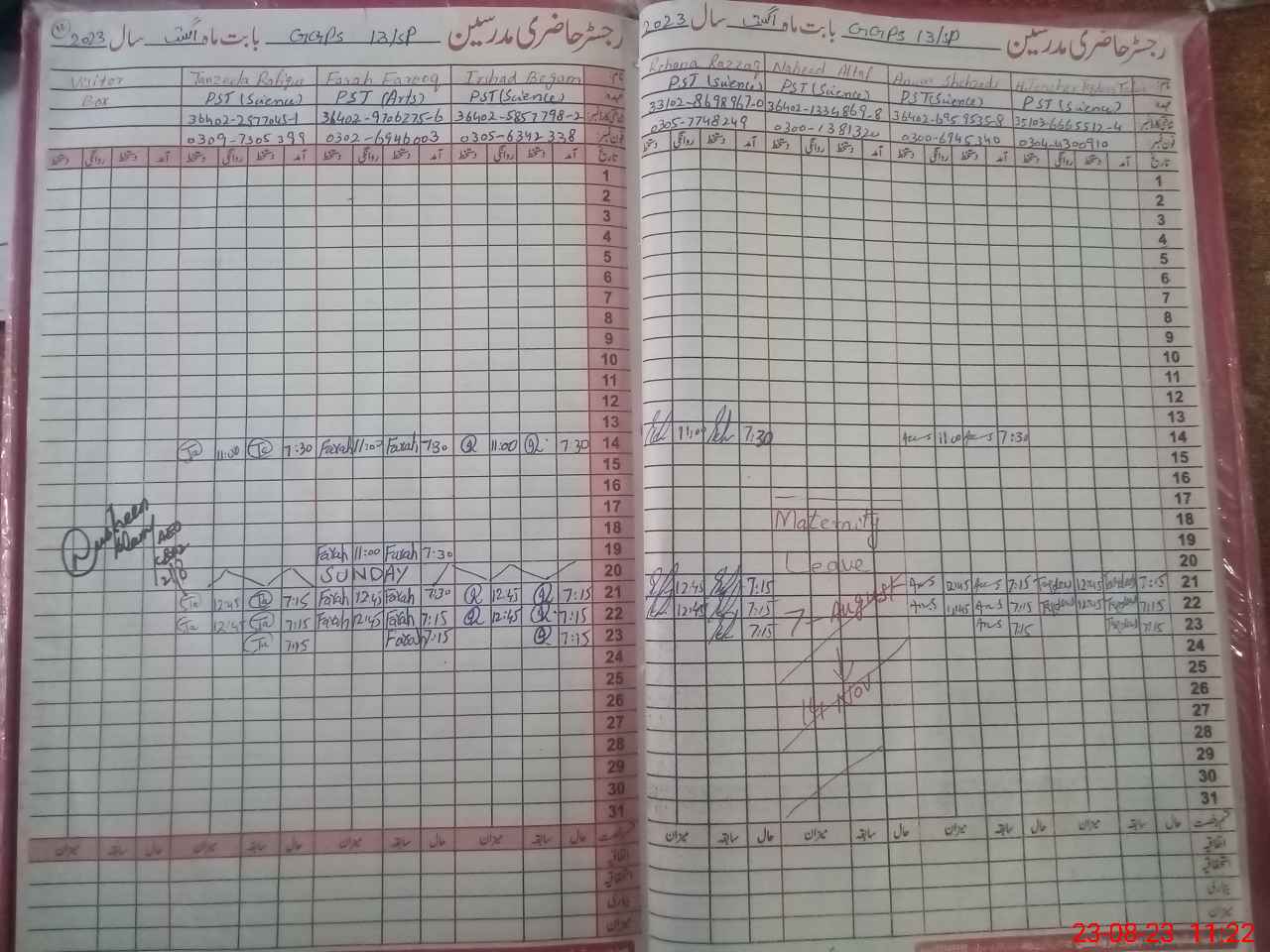| 36**** | Na**** Al**** | PST | Regular | 2 | 0 | 0 | 0 | 0 | 0 | 0 | 0 | 2 | Maternity |