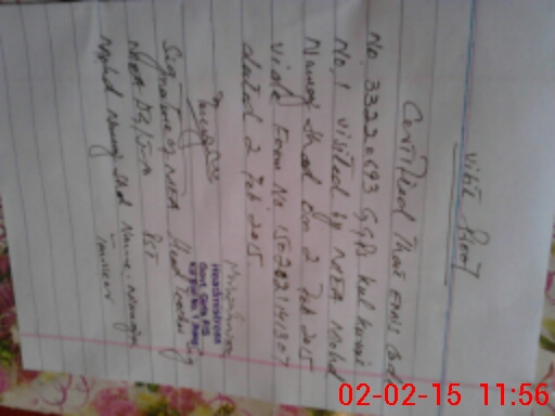 | Monitoring Date: 02-02-2015 | Start Time: 02-02-2015 11:20 AM | End Time: 02-02-2015 11:58 AM | Name of MEA: J-**** MO**** NA**** (R**** | |