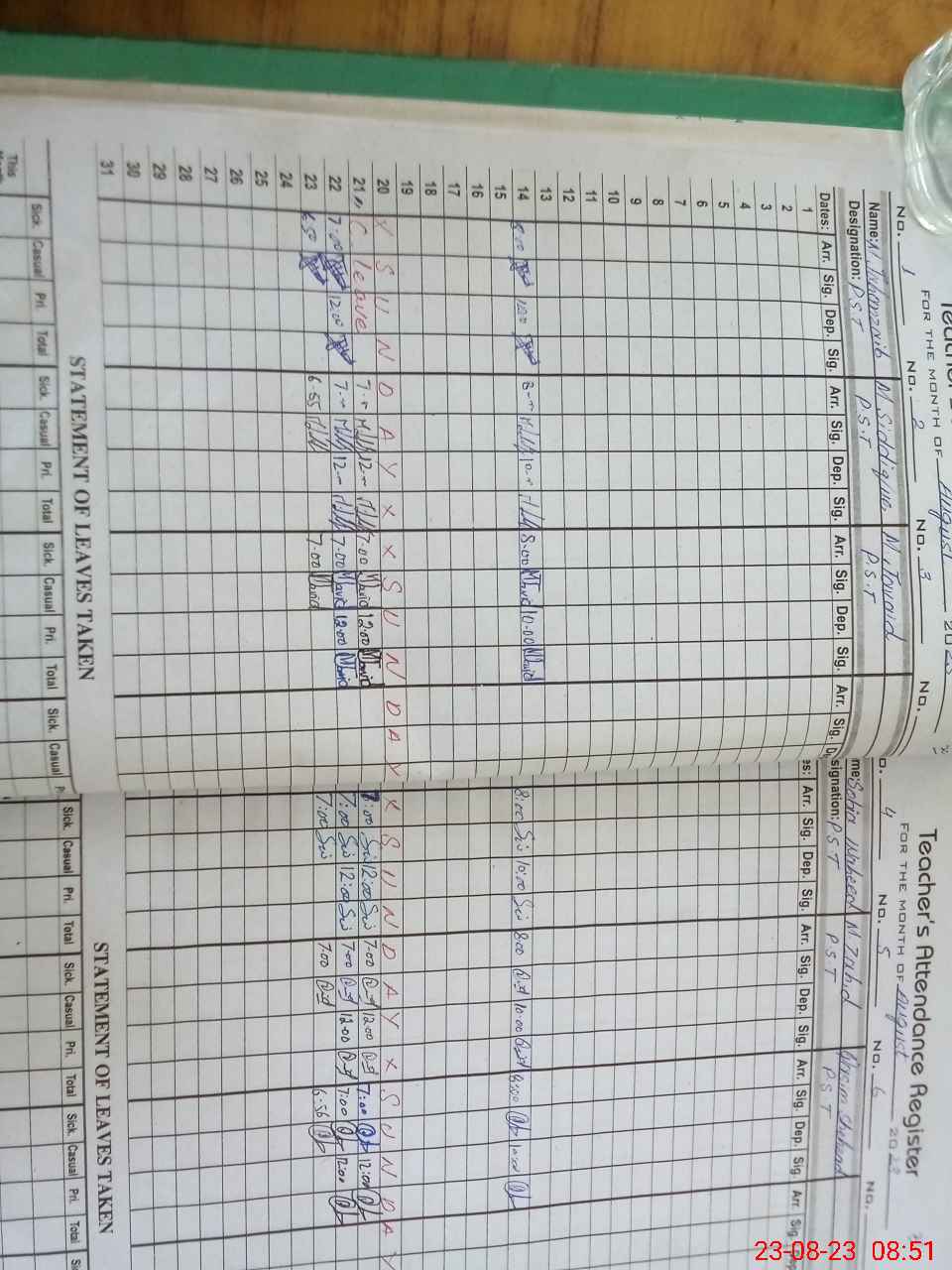| Leave | Duty | Absent | Maternity | Medical | Ex- Pak |