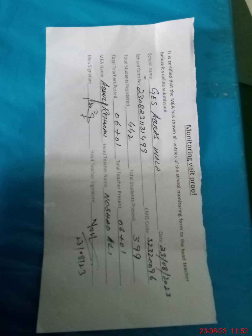 | EMIS Code: 32320096 | Name of School: GES ABBAS WALA | |||