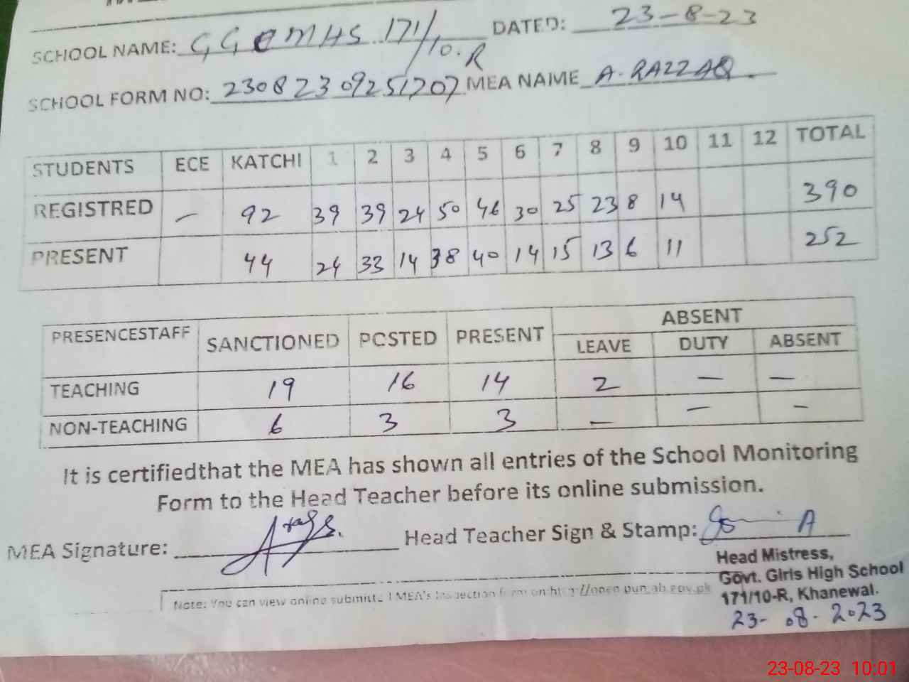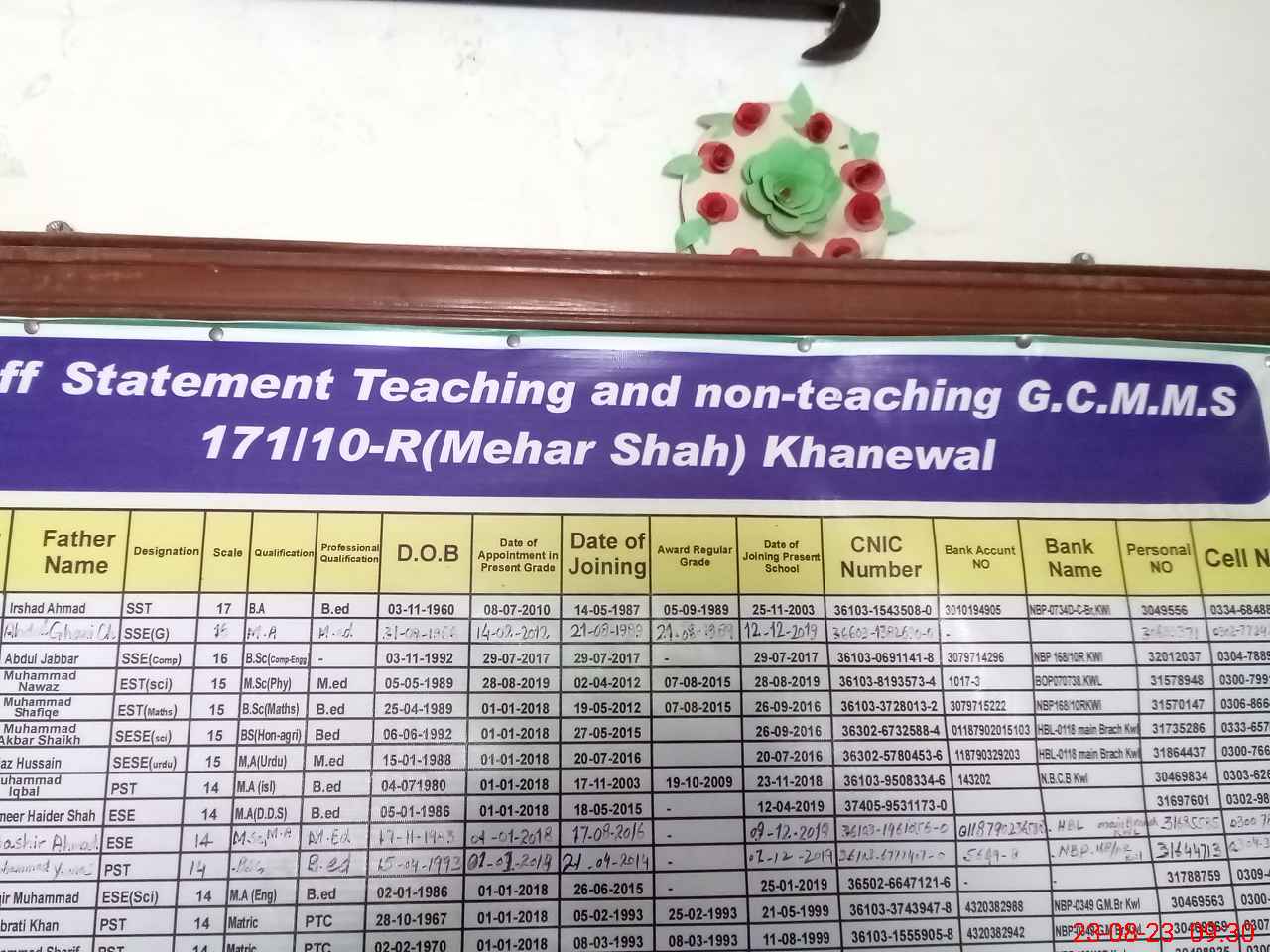| EMIS Code: 36420392 | Name of School: GGHS CMS 171/10-R KHANEWAL | |||