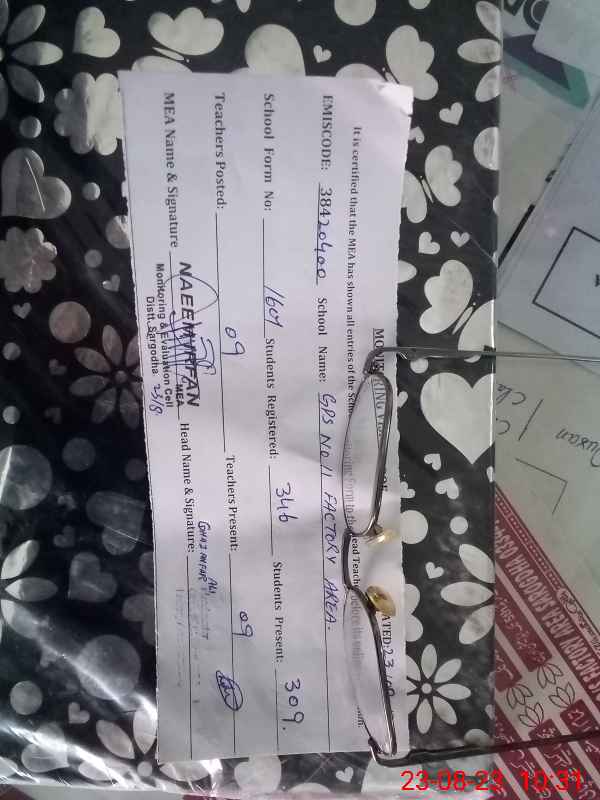 | EMIS Code: 38420400 | Name of School: GPS MC NO. 11 FACTORY AREA SARGODHA | |||