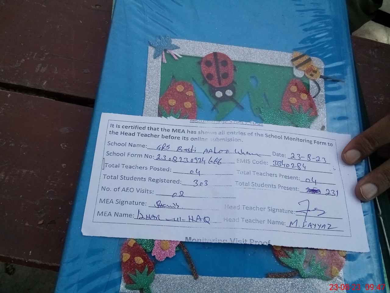 | EMIS Code: 31340284 | Name of School: GPS ALLO KHAN | |||