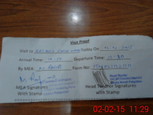 | Attendance Register | Head Teacher | MEA with School | Visit Proof |