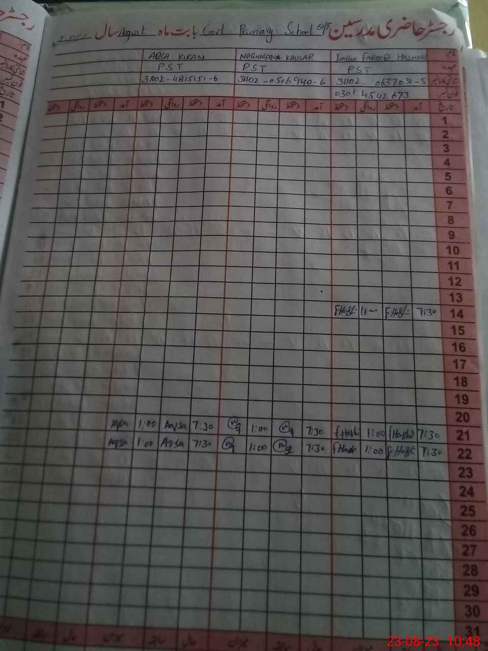 | Name: IM**** FA**** HA**** Designation: (School Headmaster's/Headmistress's) PST Phone/Cell Number: 03**** |