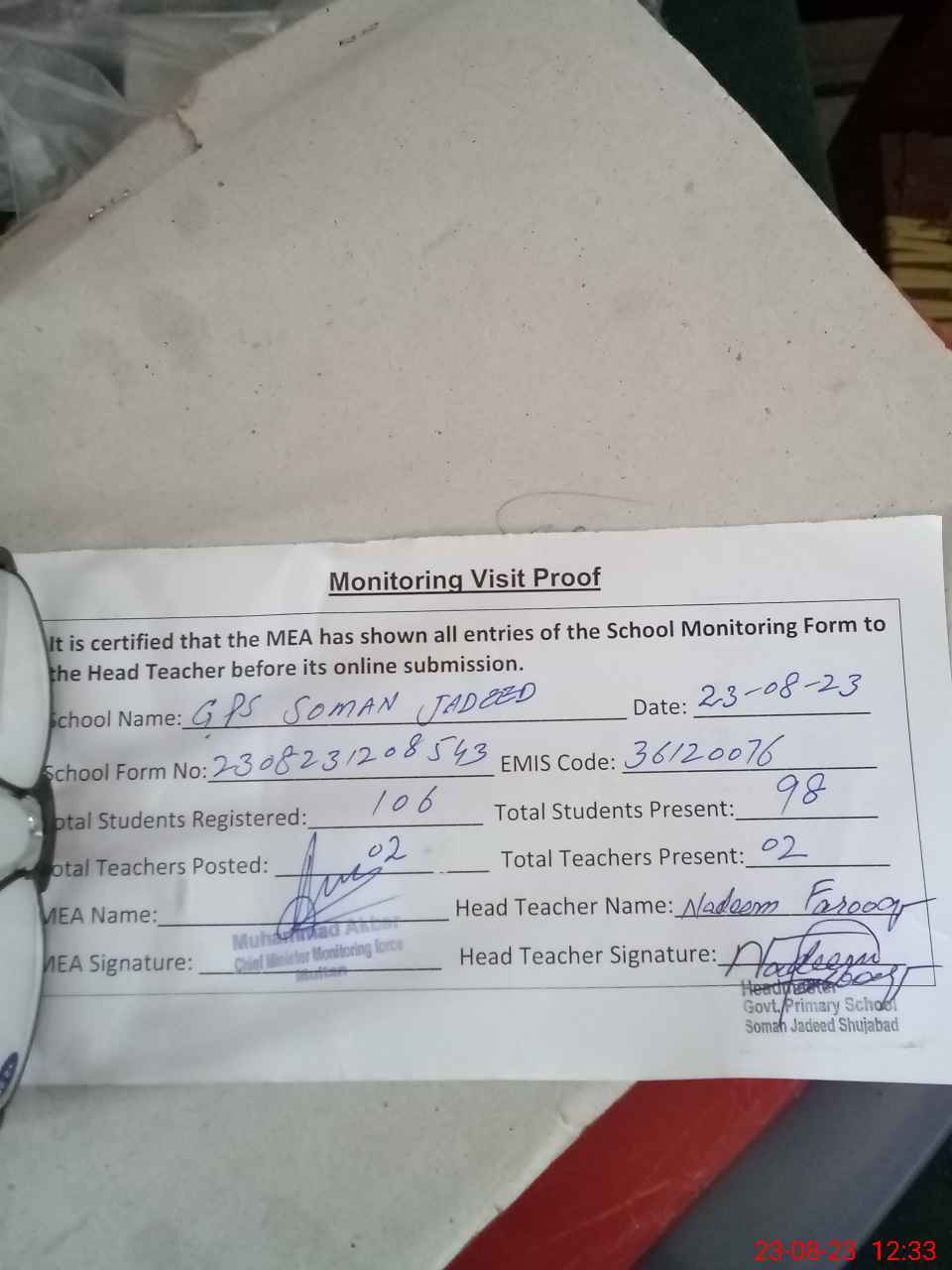 | EMIS Code: 36120076 | Name of School: GPS SOMAN JADEED P/O AGAR KHANI MOZA SOMAN | |||