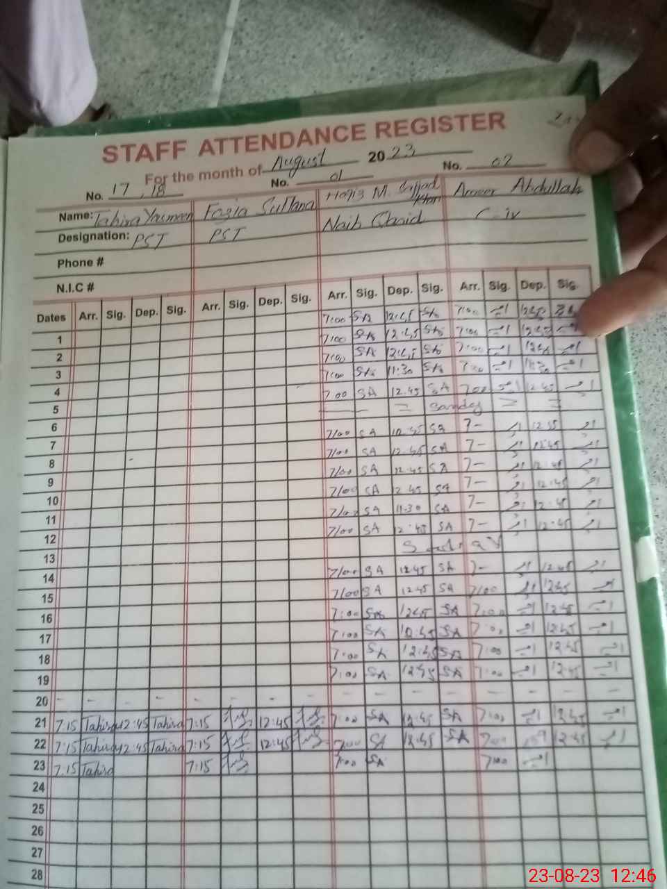 | Name: Nu**** Iq**** Designation: (School Headmaster's/Headmistress's) SST Sc,Math,Phy Phone/Cell Number: 03**** |
