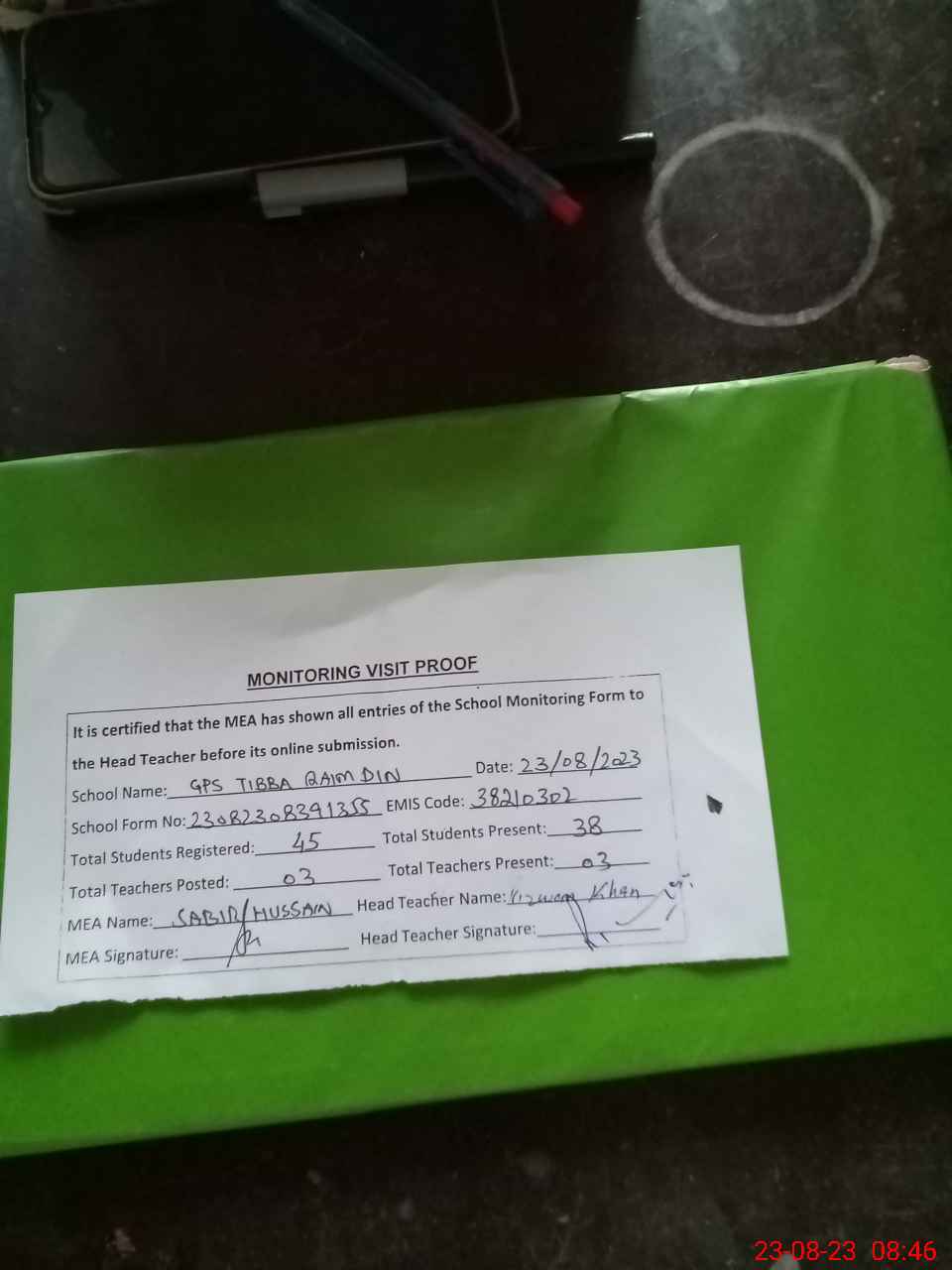 | EMIS Code: 38210302 | Name of School: GPS TIBBA QAIM DIN | |||
