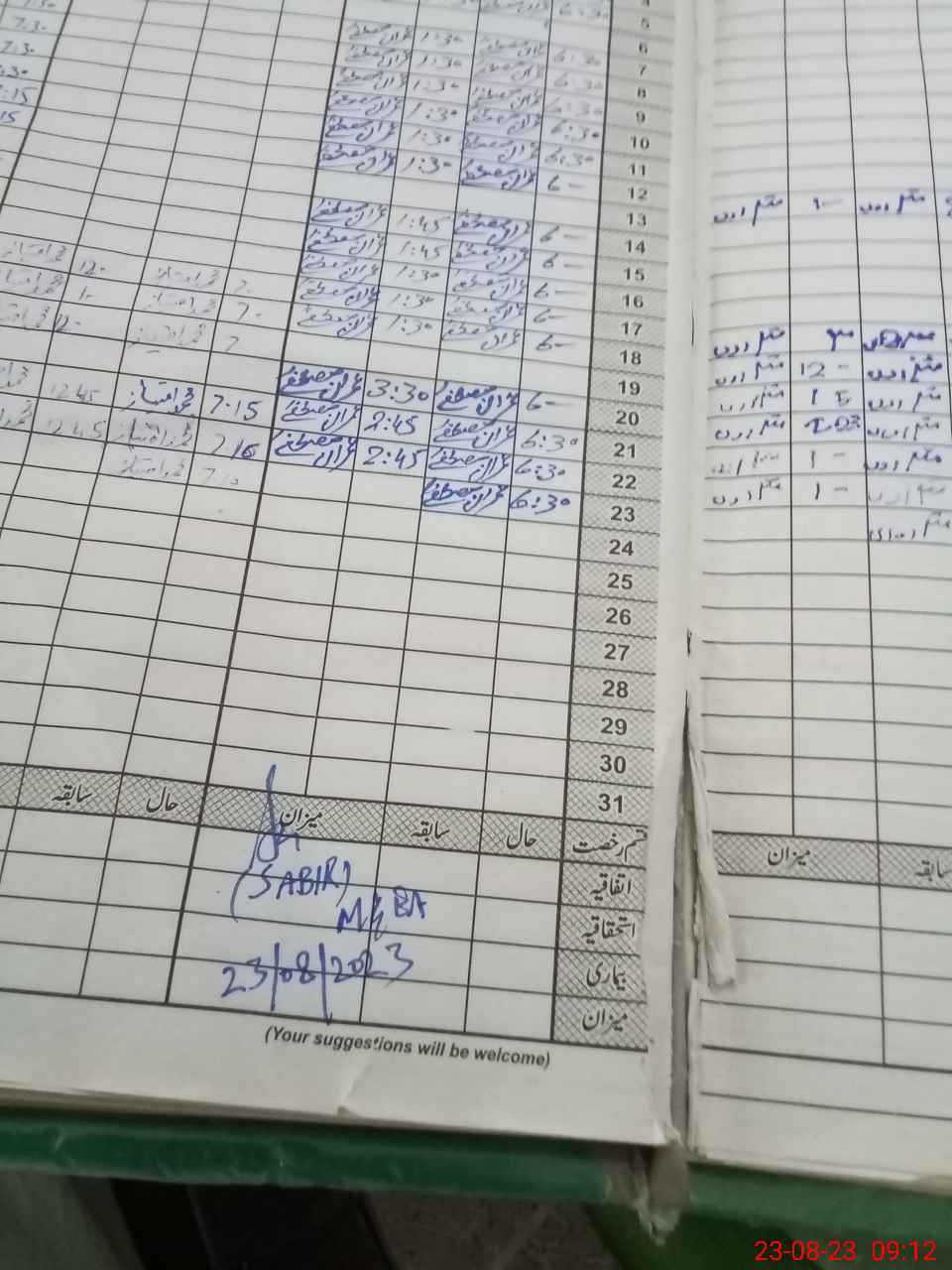 | CNIC | Full Name | Designation | R/C | Absence During Last Calender Month |