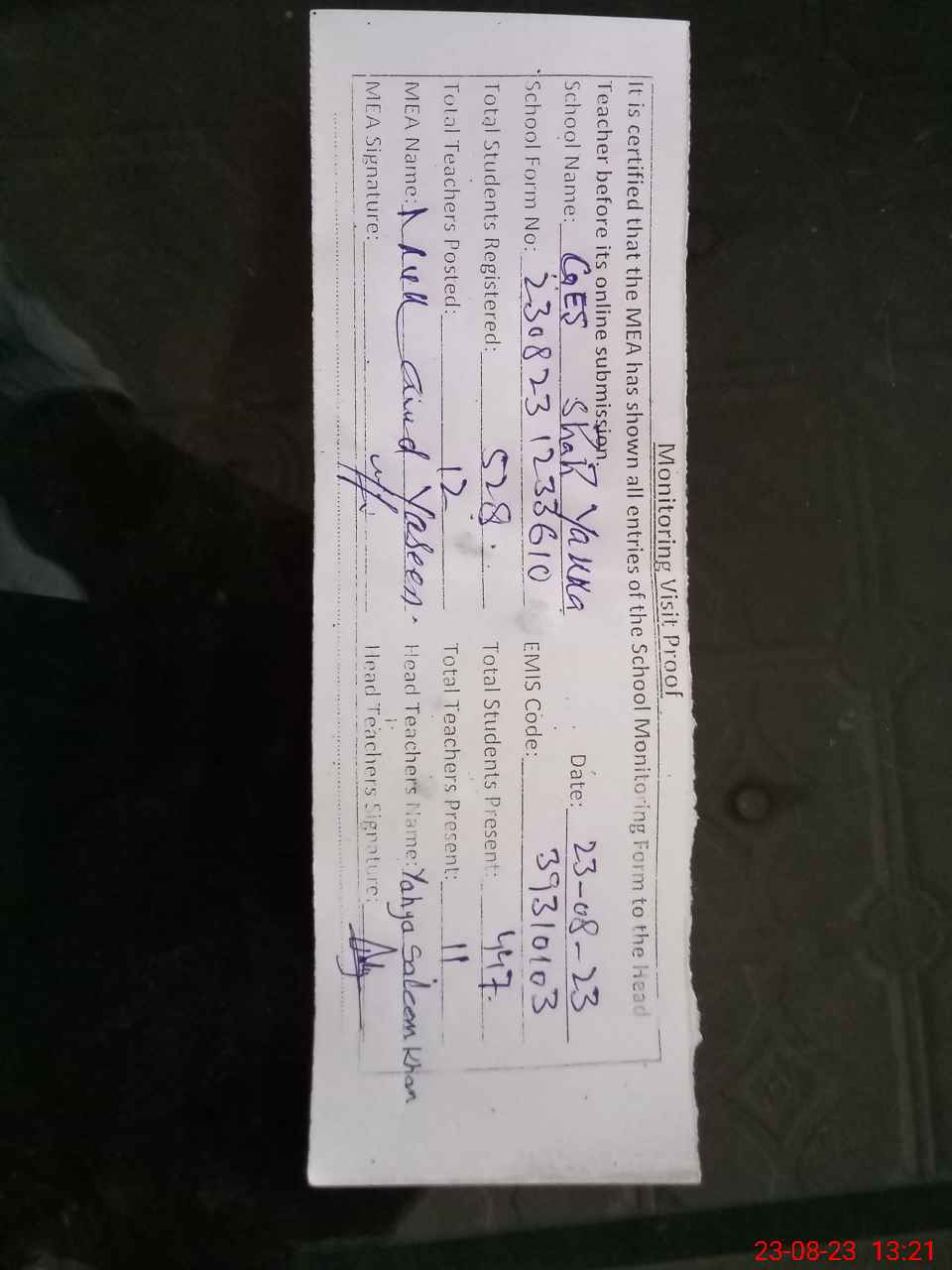 | EMIS Code: 39310103 | Name of School: GES SHAH YAKKA | |||