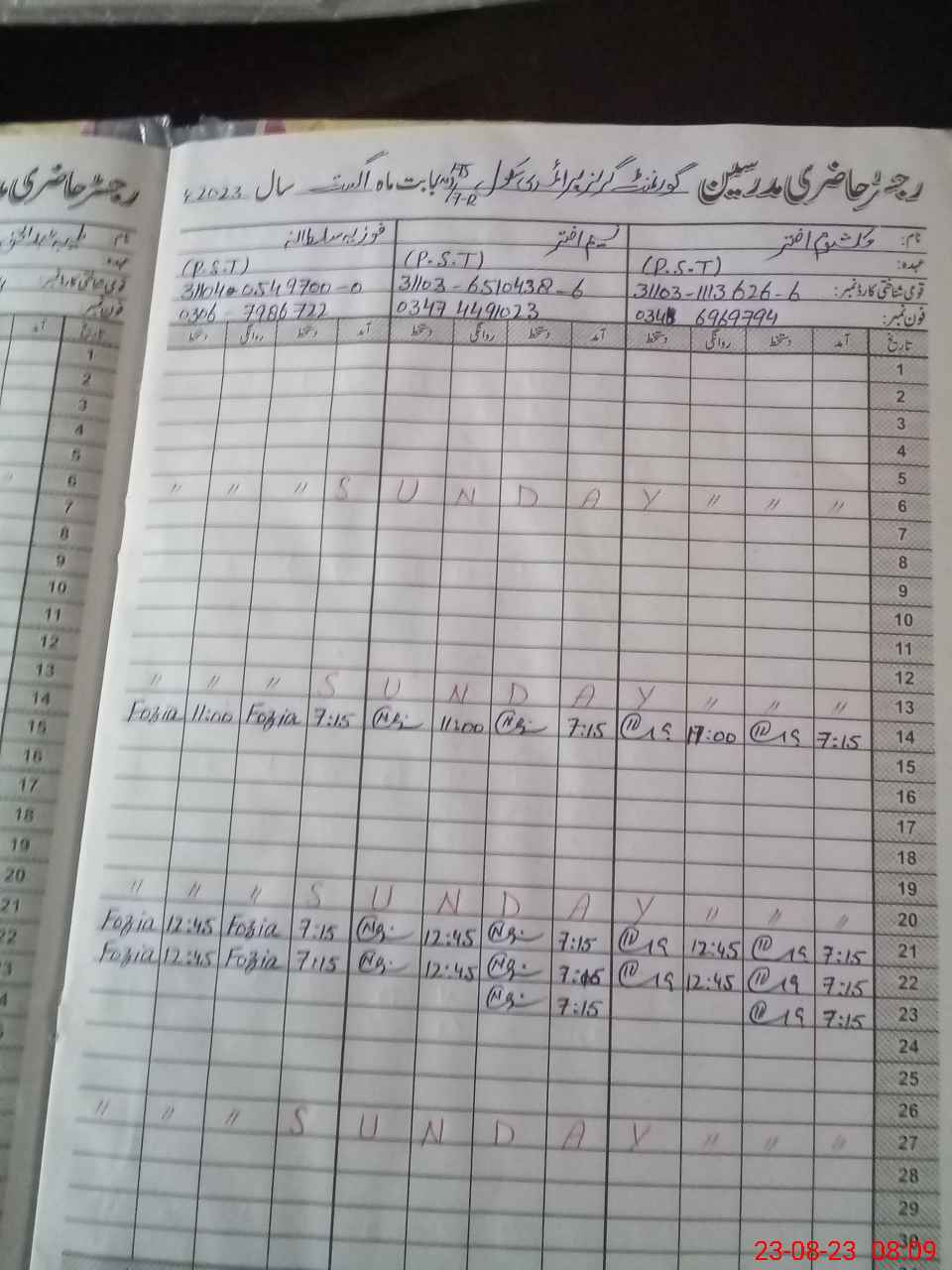 | Name: Ta**** Designation: (School Headmaster's/Headmistress's) PST Phone/Cell Number: 03**** |