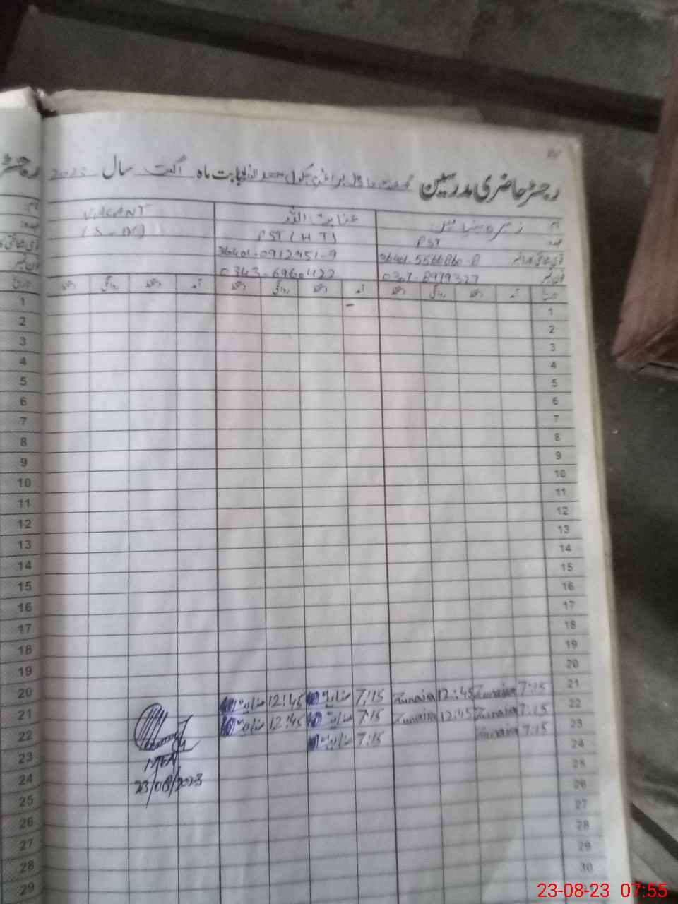 | Name: IN**** UL**** Designation: (School Headmaster's/Headmistress's) PST Phone/Cell Number: 03**** |