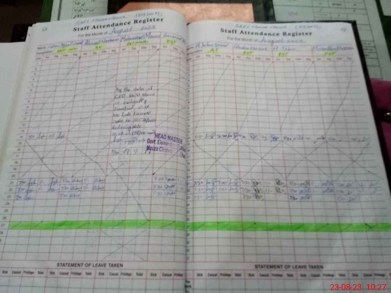 | Attendance Register | Head Teacher | MEA with School | Visit Proof |