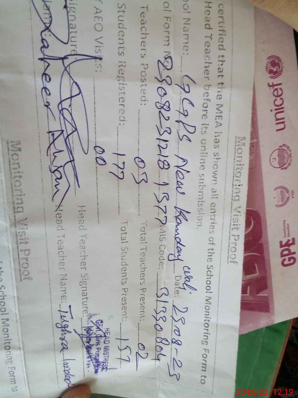 | EMIS Code: 31330804 | Name of School: GGPS NEW KANDAY WALI | |||