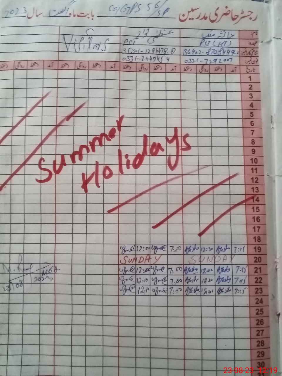 | Name: Uz**** Na**** Designation: (School Headmaster's/Headmistress's) PST Phone/Cell Number: 03**** |