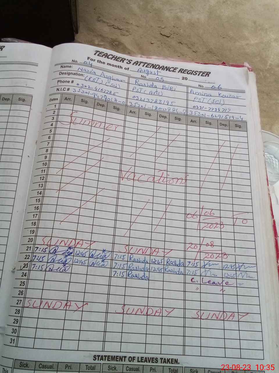 | Name: SA**** BI**** Designation: (School Headmaster's/Headmistress's) SST ARTS Phone/Cell Number: 03**** |