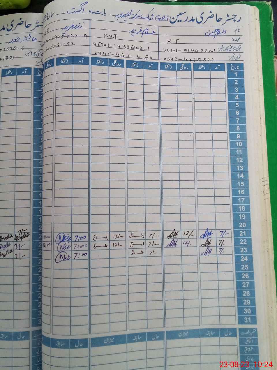 | Name: Na**** Fa**** Designation: (School Headmaster's/Headmistress's) PST Phone/Cell Number: 03**** |