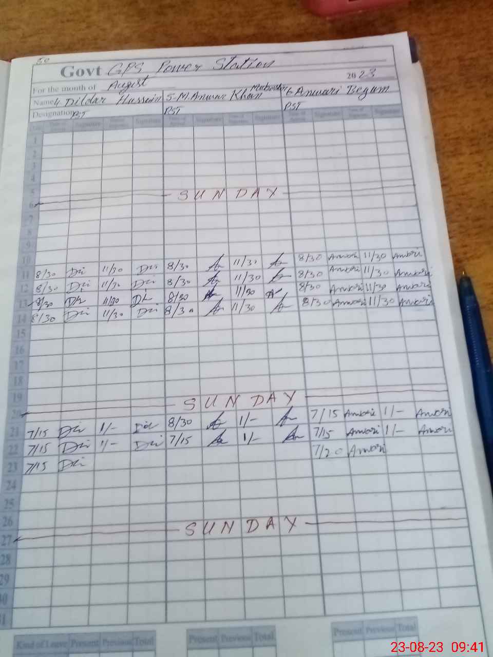 | CNIC | Full Name | Designation | R/C | Absence During Last Calender Month |