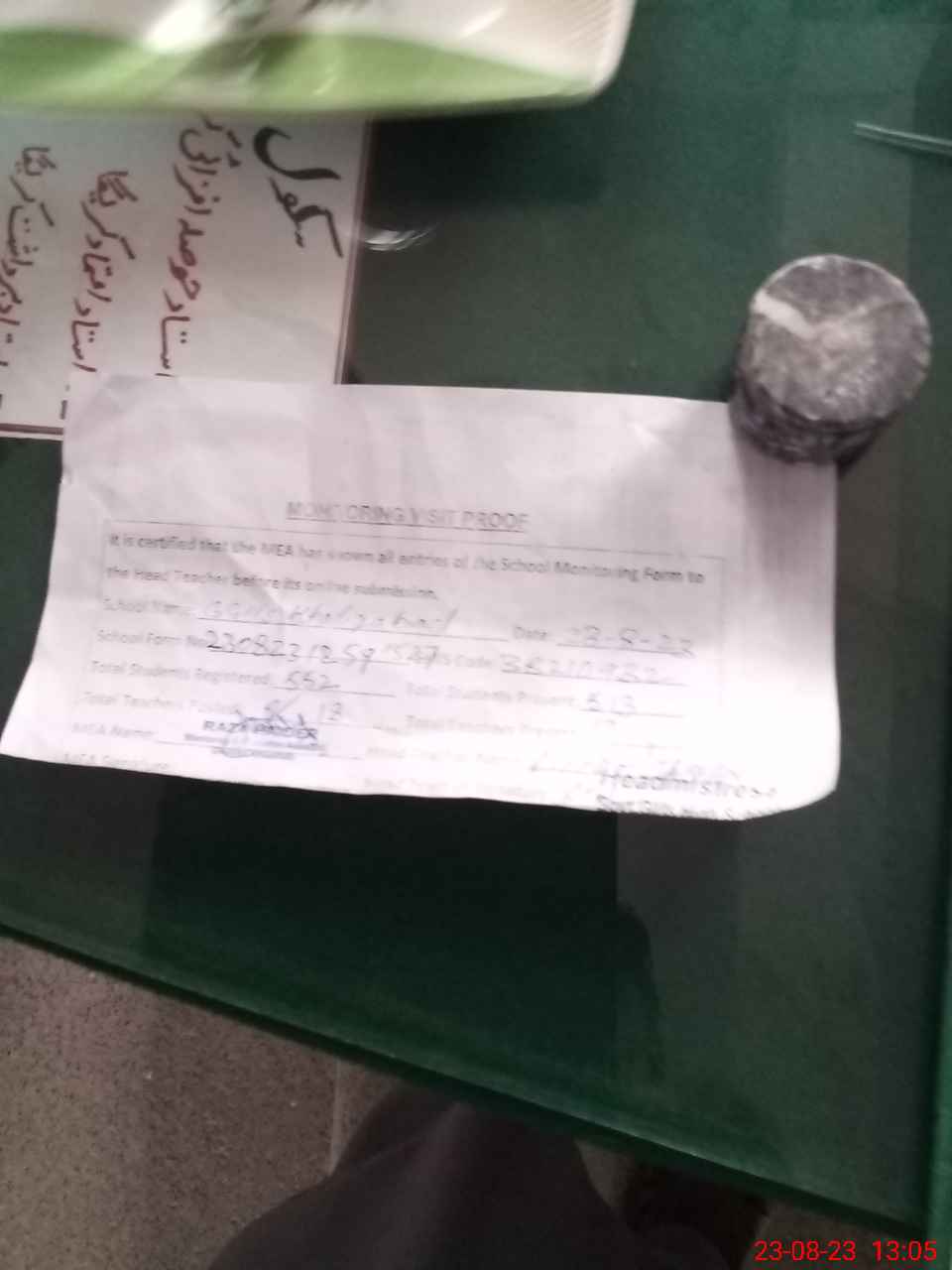 | Attendance Register | Head Teacher | MEA with School | Visit Proof |