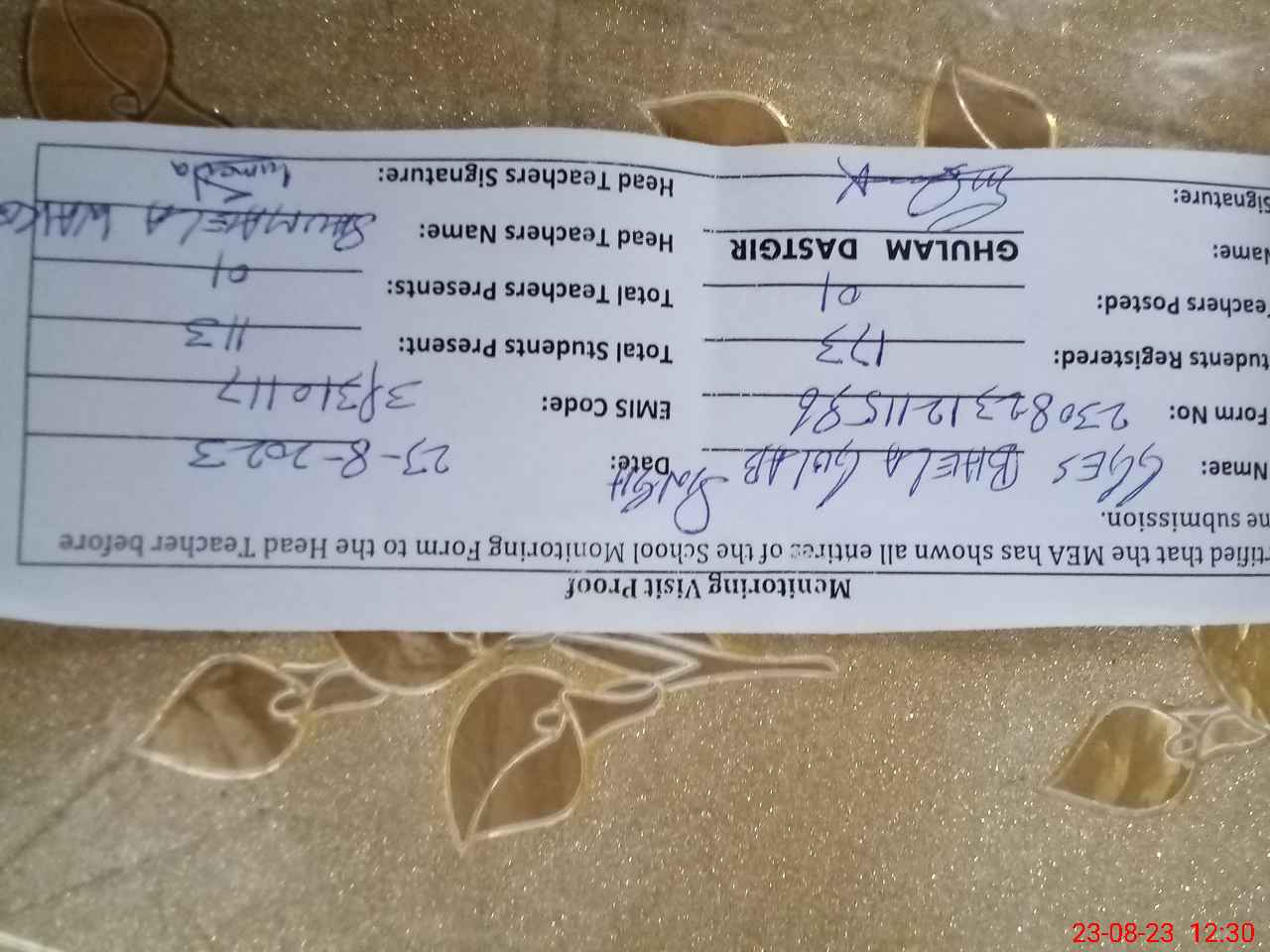 | Name: SH**** WA**** Designation: (School Headmaster's/Headmistress's) PST Phone/Cell Number: 03**** |