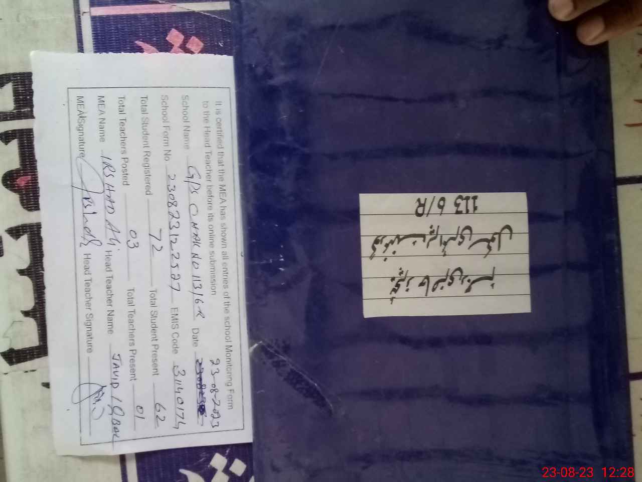 | Attendance Register | Head Teacher | MEA with School | Visit Proof |