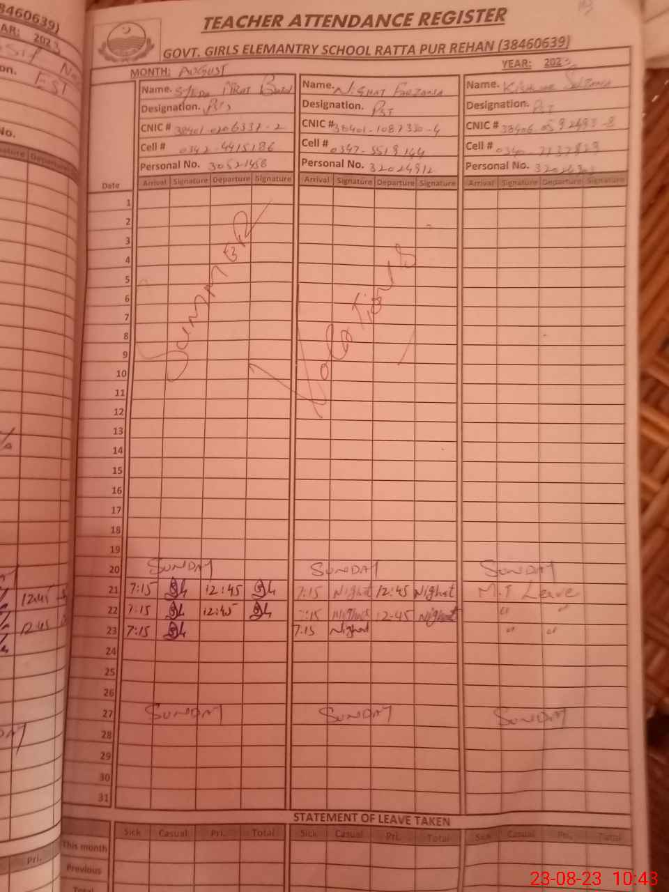 | 38**** | Ki**** Su**** | PST | Regular | 0 | 0 | 0 | 0 | 0 | 0 | 0 | 0 | 0 | Maternity |