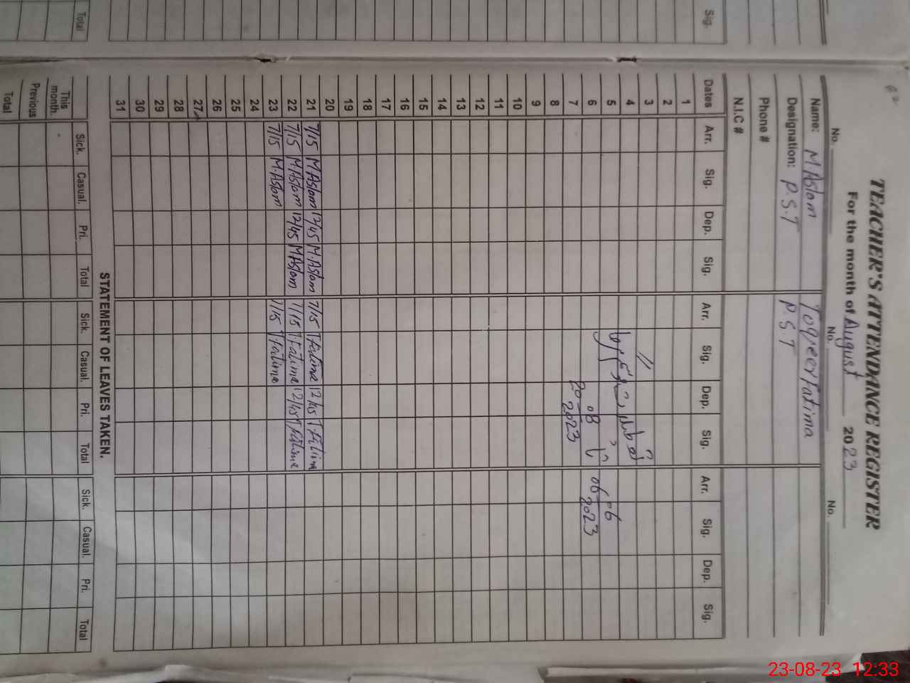 | Name: Mu**** As**** Designation: (School Headmaster's/Headmistress's) P S T Phone/Cell Number: 03**** |