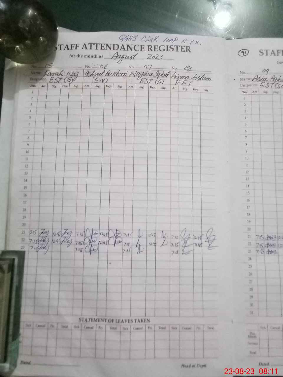 | Name: Ra**** Zu**** Designation: (School Headmaster's/Headmistress's) Inch Head Mistress Phone/Cell Number: 03**** |