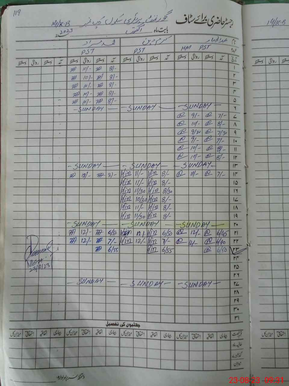 | Name: AB**** JA**** Designation: (School Headmaster's/Headmistress's) PST Phone/Cell Number: 03**** |