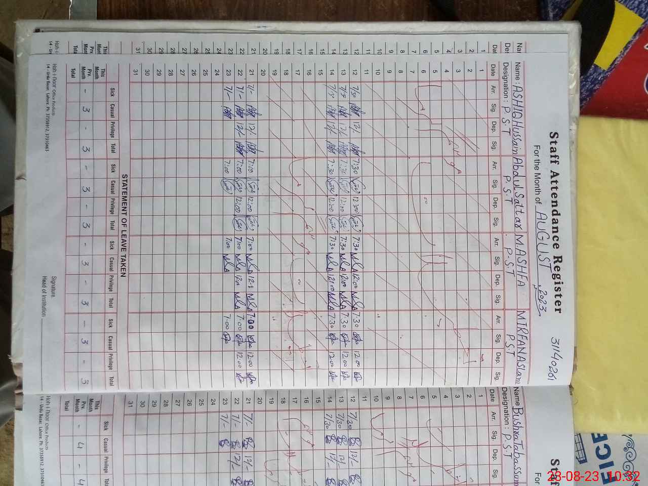 | Name: AS**** HU**** Designation: (School Headmaster's/Headmistress's) PST Phone/Cell Number: 03**** |