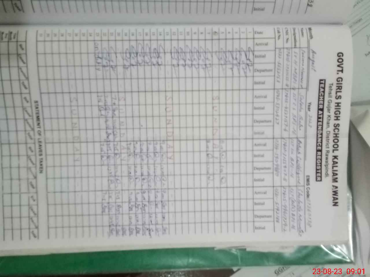 | 37**** | Sa**** Na**** | Sr. Headmaster | Regular | 0 | 0 | 0 | 0 | 0 | 0 | 0 | 0 | 0 | Other |