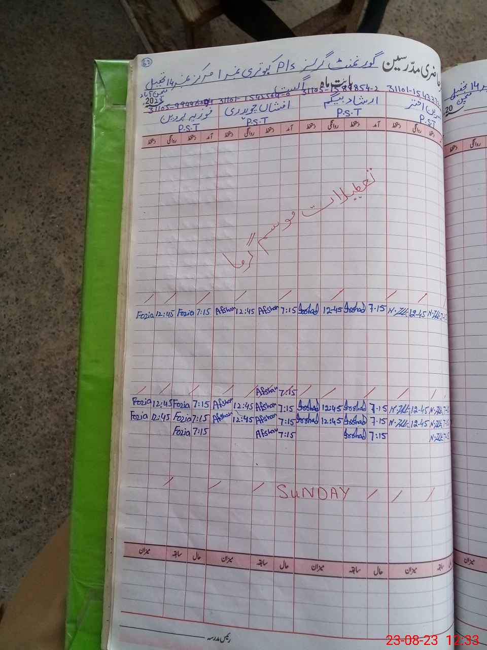 | Name: NA**** AK**** Designation: (School Headmaster's/Headmistress's) PST Phone/Cell Number: 03**** |