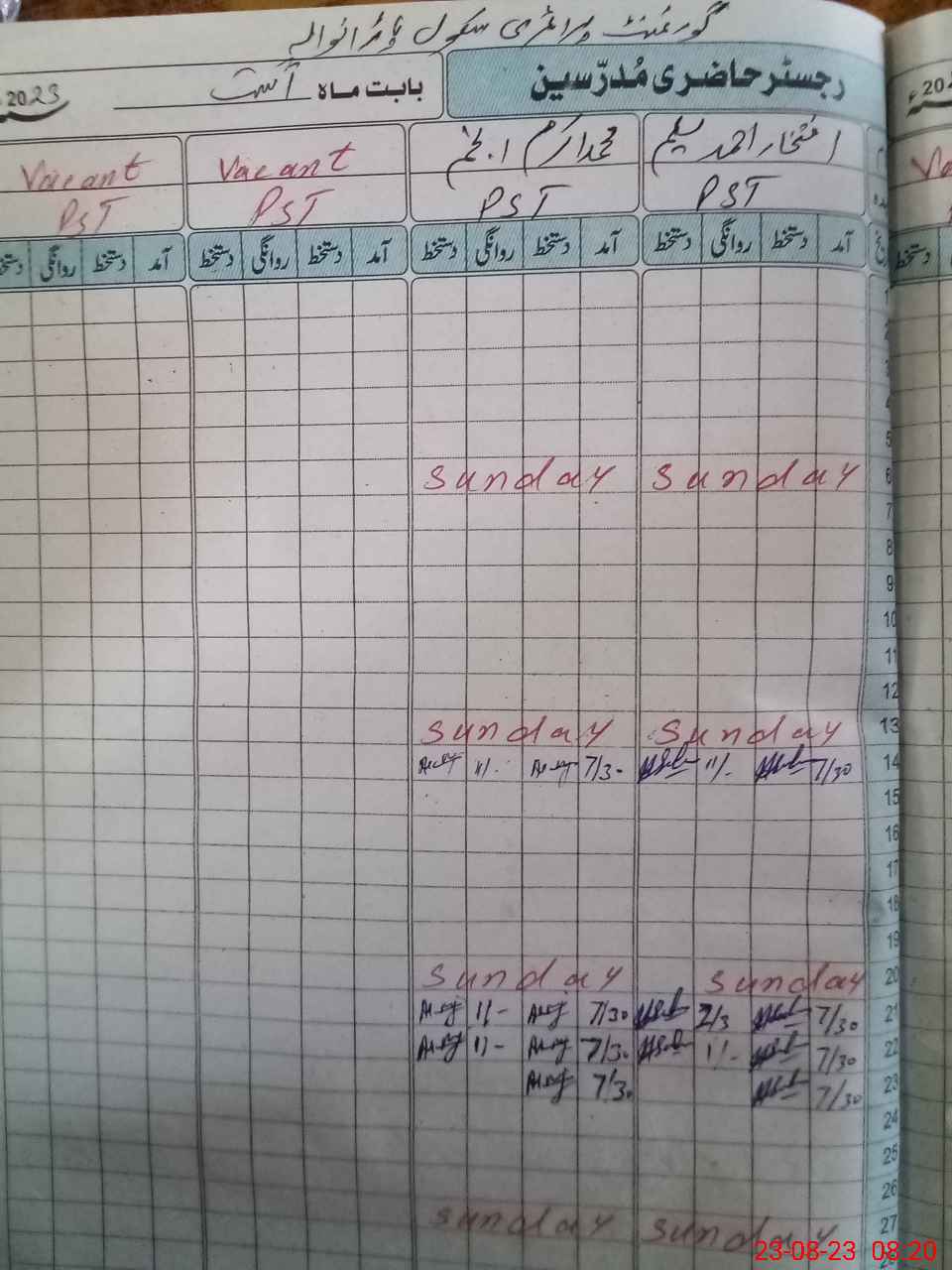 | Name: IF**** AH**** SA**** Designation: (School Headmaster's/Headmistress's) PST Phone/Cell Number: 03**** |