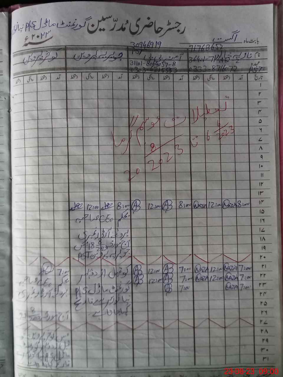 | Name: NA**** KH**** Designation: (School Headmaster's/Headmistress's) PST Phone/Cell Number: 03**** |
