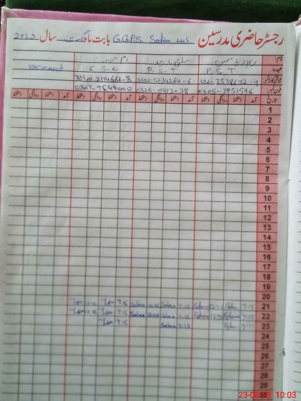 | Name: RE**** YA**** Designation: (School Headmaster's/Headmistress's) PST Phone/Cell Number: 03**** |