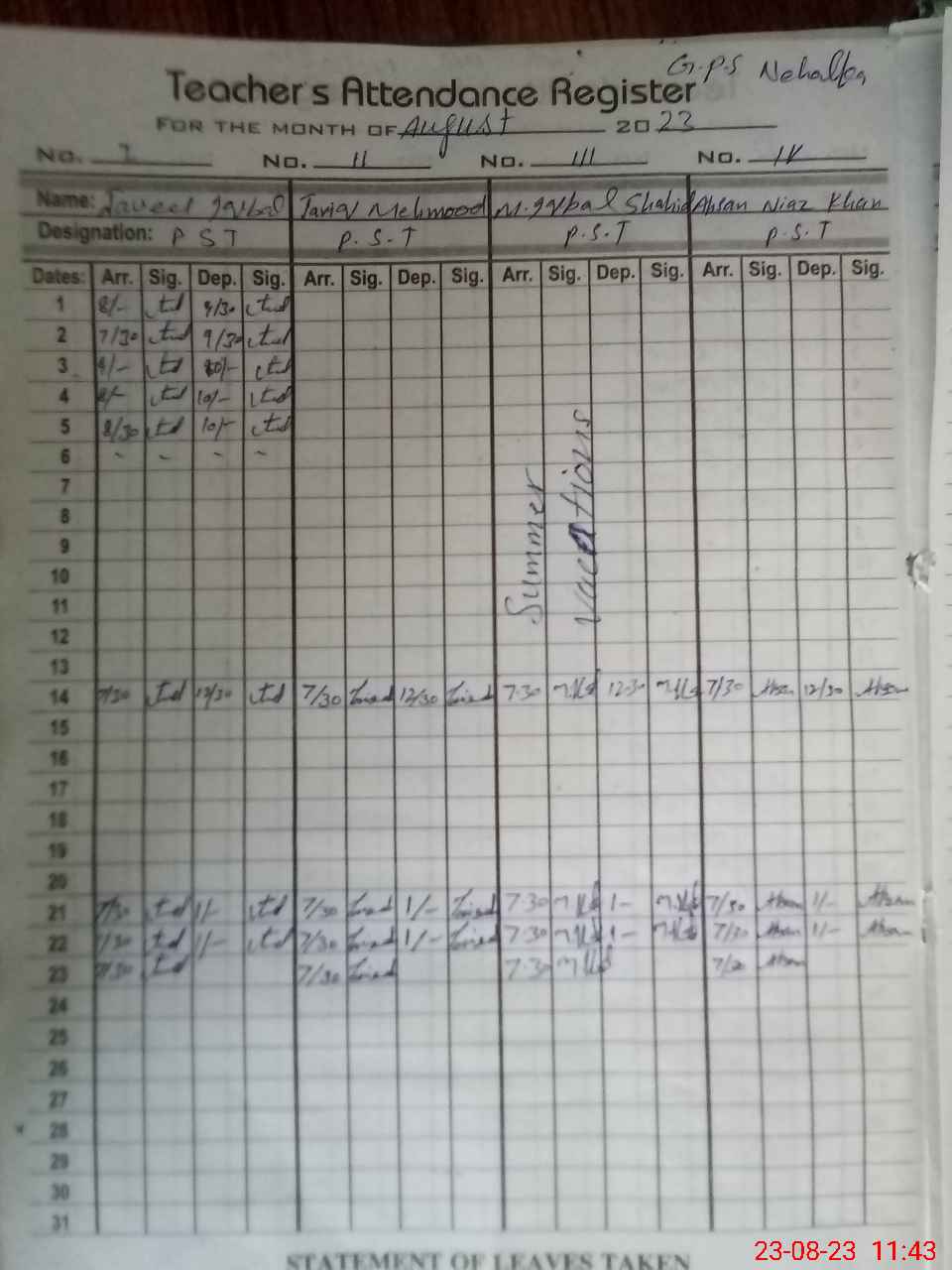 | Name: Ja**** Iq**** Designation: (School Headmaster's/Headmistress's) PST Phone/Cell Number: 03**** |