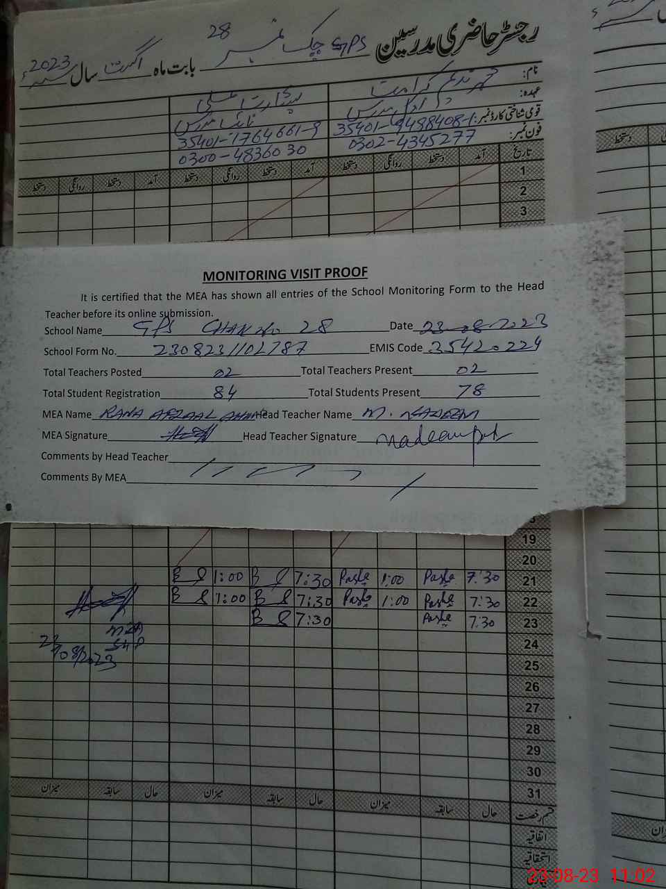 | EMIS Code: 35420224 | Name of School: GPS CHAK NO. 28 | |||