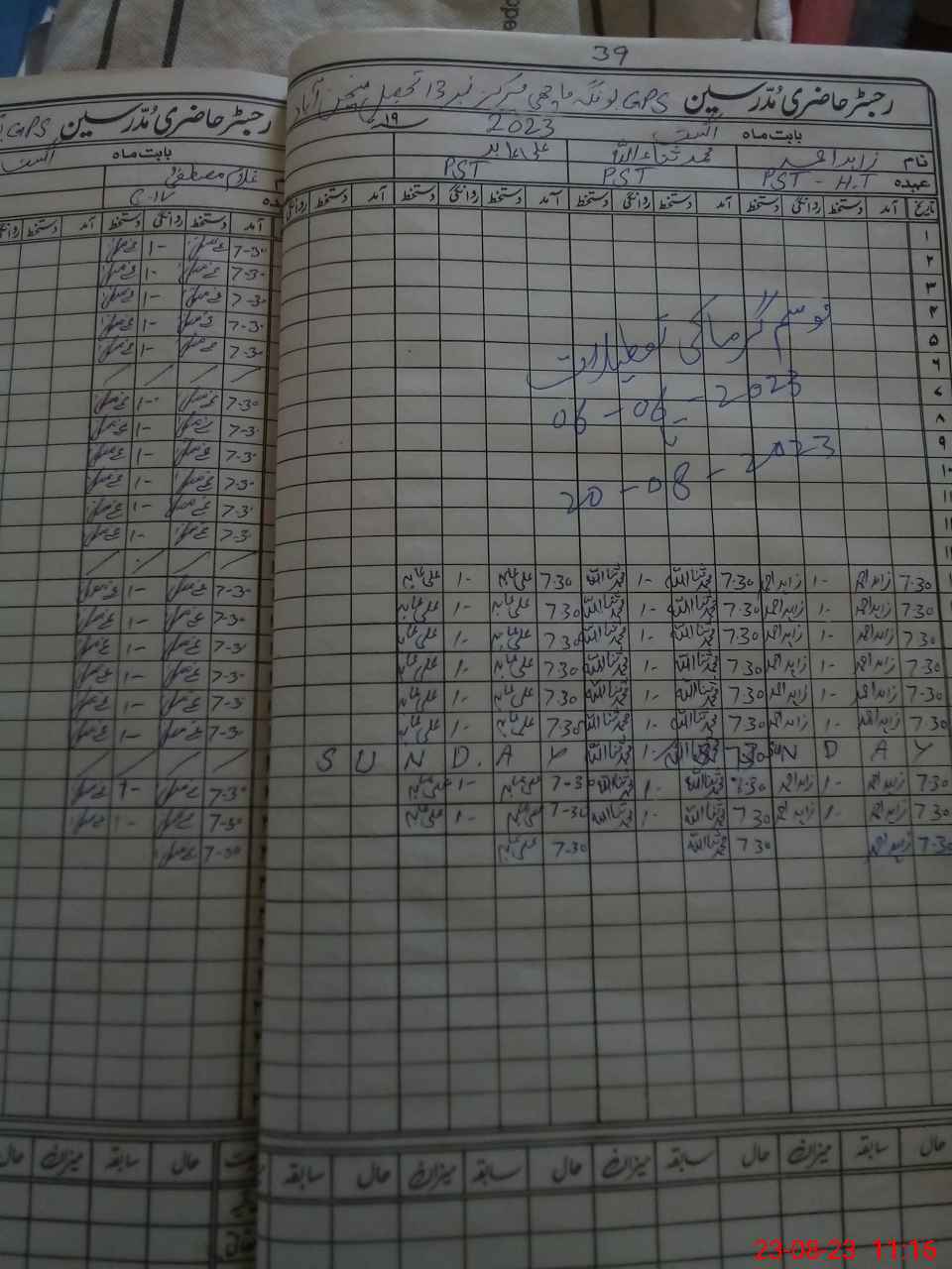 | Name: ZA**** AH**** Designation: (School Headmaster's/Headmistress's) PST Phone/Cell Number: 03**** |